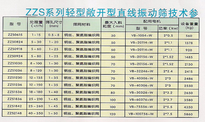 ZZS系列直線振動篩是一種以振動電機為激振源的新型振動篩分設備,開發(fā)有輕型篩和重型高效篩兩大系列,其中輕型篩通常是水平安裝,且多采用編織篩網(wǎng),廣泛應用于冶金、礦山、煤炭、化工、建材、耐火、食品加工等各行業(yè)對中、小顆粒物料及各種粉狀物料的分級、脫水、脫介;而重型高效篩一般采用5°-15°傾角安裝,且多采用篩板,廣泛應用于冶金、礦山、煤炭、化工、建材、耐火等各行各業(yè)對大、中顆粒物料的分級。